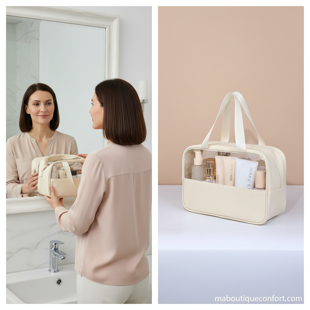 Préparez vos déplacements avec élégance grâce à cette trousse de toilette transparente pour femme, pensée pour combiner praticité, légèreté et organisation. Idéale pour les voyages, les week-ends ou la salle de bain, elle offre un rangement efficace de vos produits de beauté et accessoires tout en vous permettant de voir leur contenu en un instant.