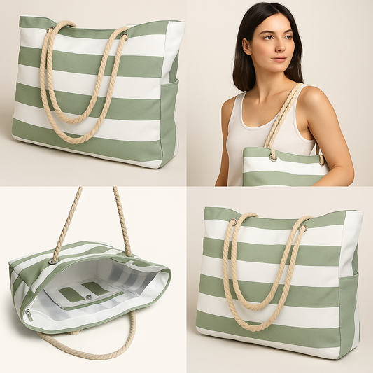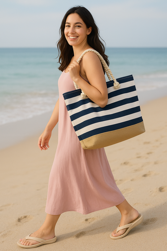 Sac de Plage Rayé Femme - Sac Fourre-Tout , Style Marin